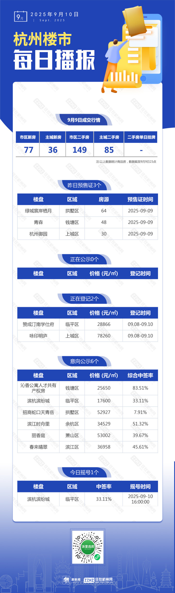 怎么找配资公司9月10日, 杭州新房5盘预售, 2盘报名中
