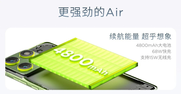 配置方面,大家最关心的应该是续航,这款手机给到了 4800mAh 的大电池。我知道,这听起来可能有点奇怪,但它在超薄机里确实算得上大电池了,毕竟另外两款都是 3 开头——